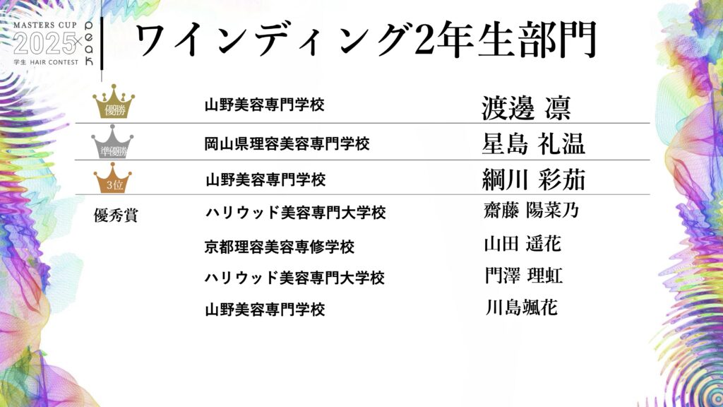 全国美容週間 MASTERS CUP 2025【ワインディング2年生部⾨ 審査発表】